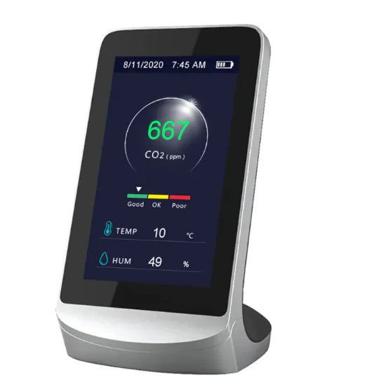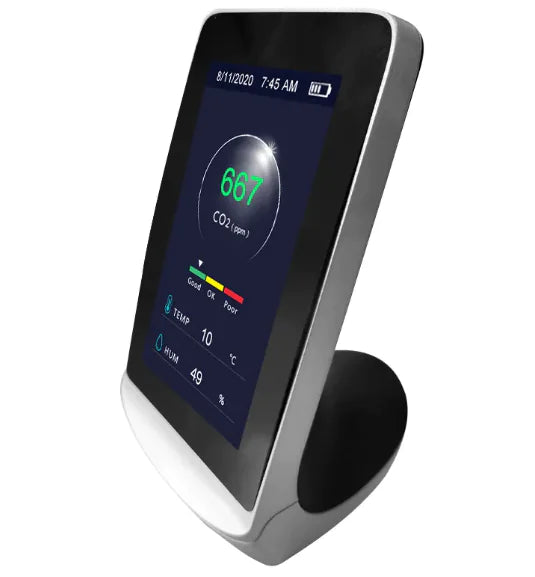 A reliable device for monitoring carbon dioxide levels, temperature, and humidity. Ideal for maintaining air quality and comfort, it provides real-time readings in an easy-to-read English display, helping you ensure a safe and healthy indoor environment.